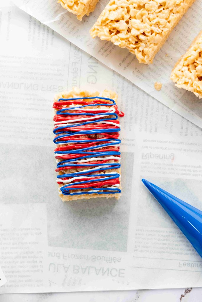 - For a more polished look, transfer the melted candy into a piping bag or a zip-top bag with the tip snipped off. Use it to drizzle the colored melts over the tops of the treats in stripes, zigzags, or your favorite pattern. This gives you precise control and lets the colors really pop.