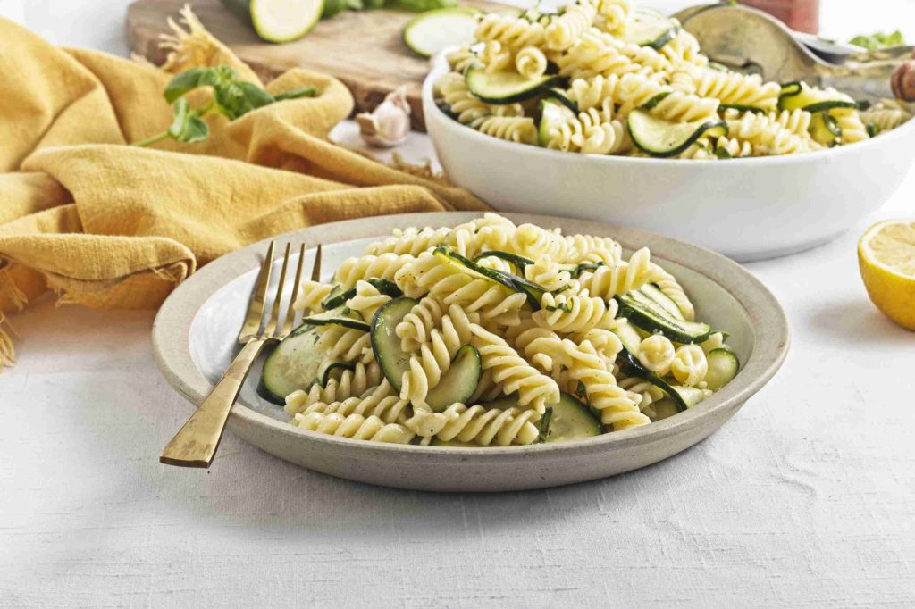 - Mustard: In this recipe, the mustard acts as an emulsifier for the olive oil and lemon juice so they evenly coat the pasta and zucchini and don’t separate, leaving the salad with an oily feel. The flavour is minimal at a small amount but should not be skipped.