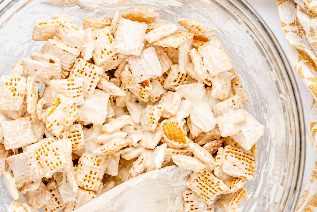 - Shake, don’t crush. Toss and shake gently so the Chex stays intact.
